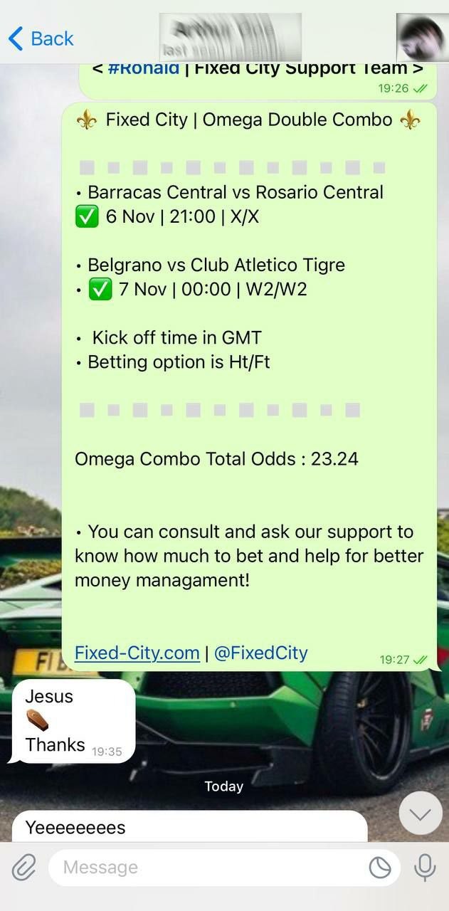 But now Our team has +25 fulltime job employes and also +120 members around world that has duty to organize matches and talk to teams for fixing matches, many of our agents travel around world and organize secret face to face meetings with teams or players so we can be 100% sure about our services to work. In past we did these arrangements online but now as we know meeting in real life works better we try to usually do it specially for our Alpha Combo so you can enjoy no stress winning!